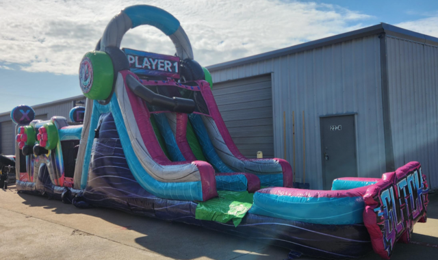 💪 Unleash the excitement and challenge your guests with the 47' Glitch Gamer Obstacle Course!